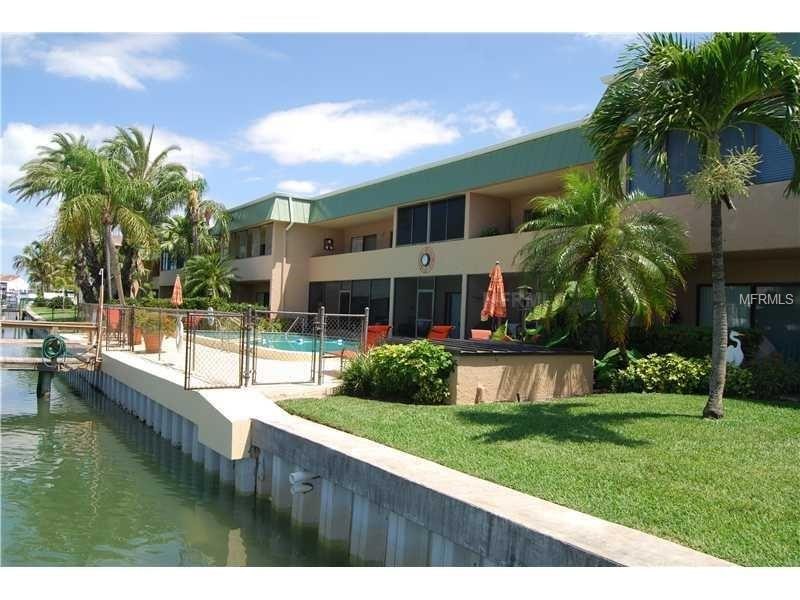 This two bedroom/one bath, waterfront condo will not disappoint. Location is the key. With a park, tennis courts, ball field, and walking path directly across the street, and the Gulf of Mexico just a short walk or bike ride away, you will feel like you are on vacation every day. The second floor unit with a great room plan opens up to the kitchen at one end and the enclosed Florida room at the other. The kitchen has plenty of cabinet space with a counter height bar on the dining room side. The master bedroom opens to the Florida room and has a nice, large walk in closet. Relax at the pool while enjoying a wide open waterfront view. Boat slips are on a first come first serve basis for a reasonable monthly charge.This perfect location is convenient to popular restaurants, grocery stores, banks, and the well known John's Pass Village. PLEASE NOTE - This is an annually leased property .Don't miss out! Call Karen Evans (727)743-3324 today!!
