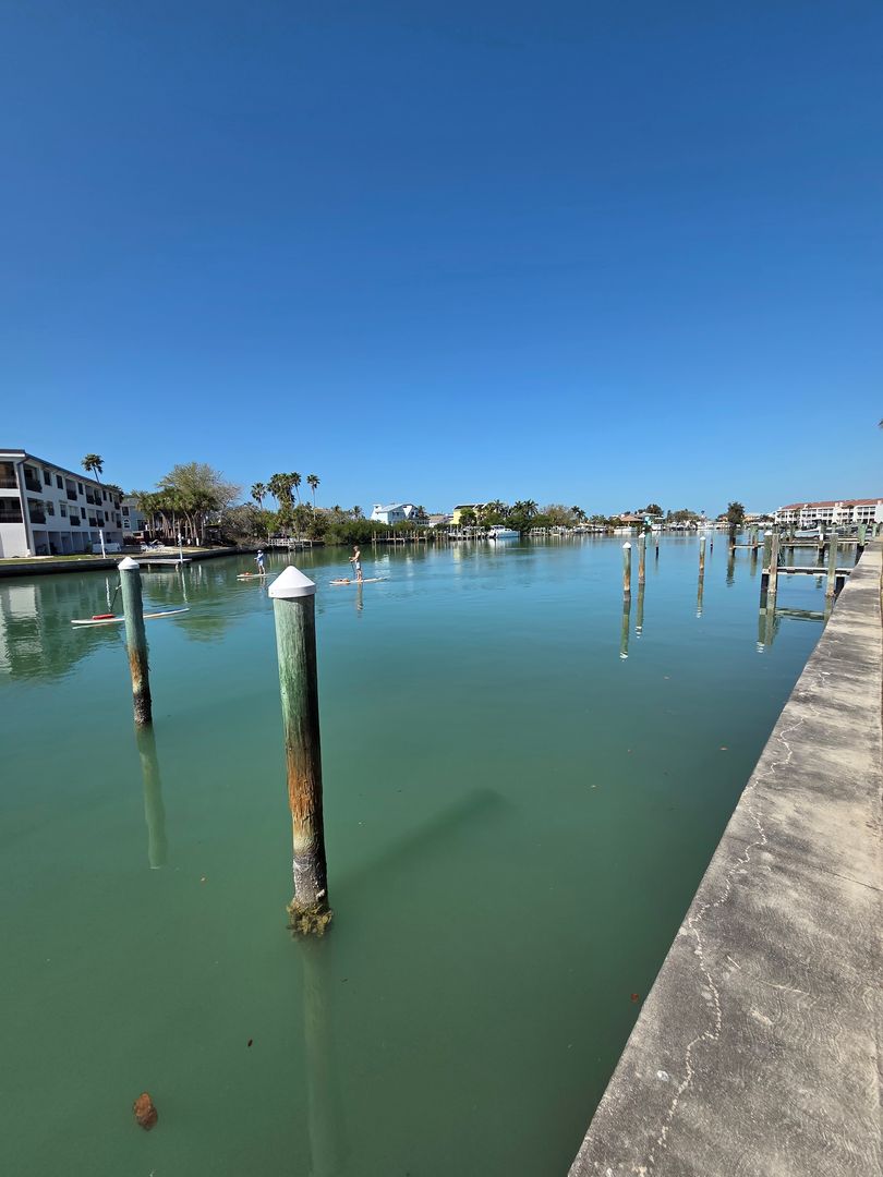 This two bedroom, one bath, waterfront condo will not disappoint. Location is the key. With a park, pickleball courts, ball field, and walking path directly across the street, and the Gulf of Mexico just a short walk or bike ride away, you will feel like you are on vacation every day. The second floor unit has a great room style floor plan that opens up to the kitchen at one end and the enclosed Florida room at the other. The kitchen has plenty of cabinet space with a counter height bar on the dining room side. The master bedroom has sliding glass doors to easily access the Florida room and has a large walk-in closet. Each room is freshly painted in a soothing, neutral color to match most any decor. Relax at the pool while enjoying a wide open waterfront view. Boat slips are on a first come first serve basis for a reasonable monthly charge. This perfect location is convenient to popular restaurants, grocery stores, banks, and the well known John's Pass Village. PLEASE NOTE - This is an annually leased property. Don't miss out! Call Karen Evans (727)743-3324 today!!